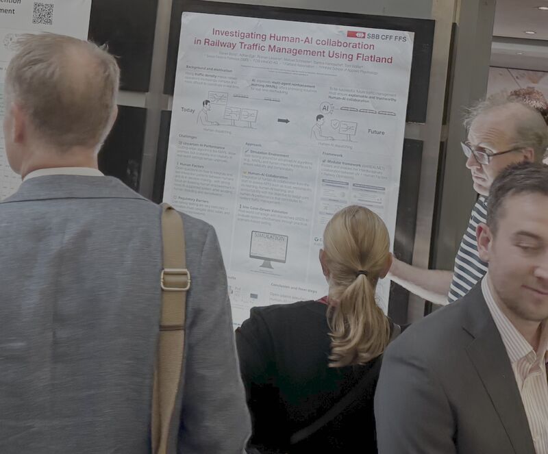 📄 The poster with Adrian, “Investigating Human‑AI Collaboration in Railway Traffic Management using Flatland,” showcasing our simulation approach from AI4REALNET. Using the Flatland environment, we explore and evaluate human‑in‑the‑loop dispatching scenarios under real‑time conditions. You can learn more at https://ai4realnet.eu/ or get in touch with us.u